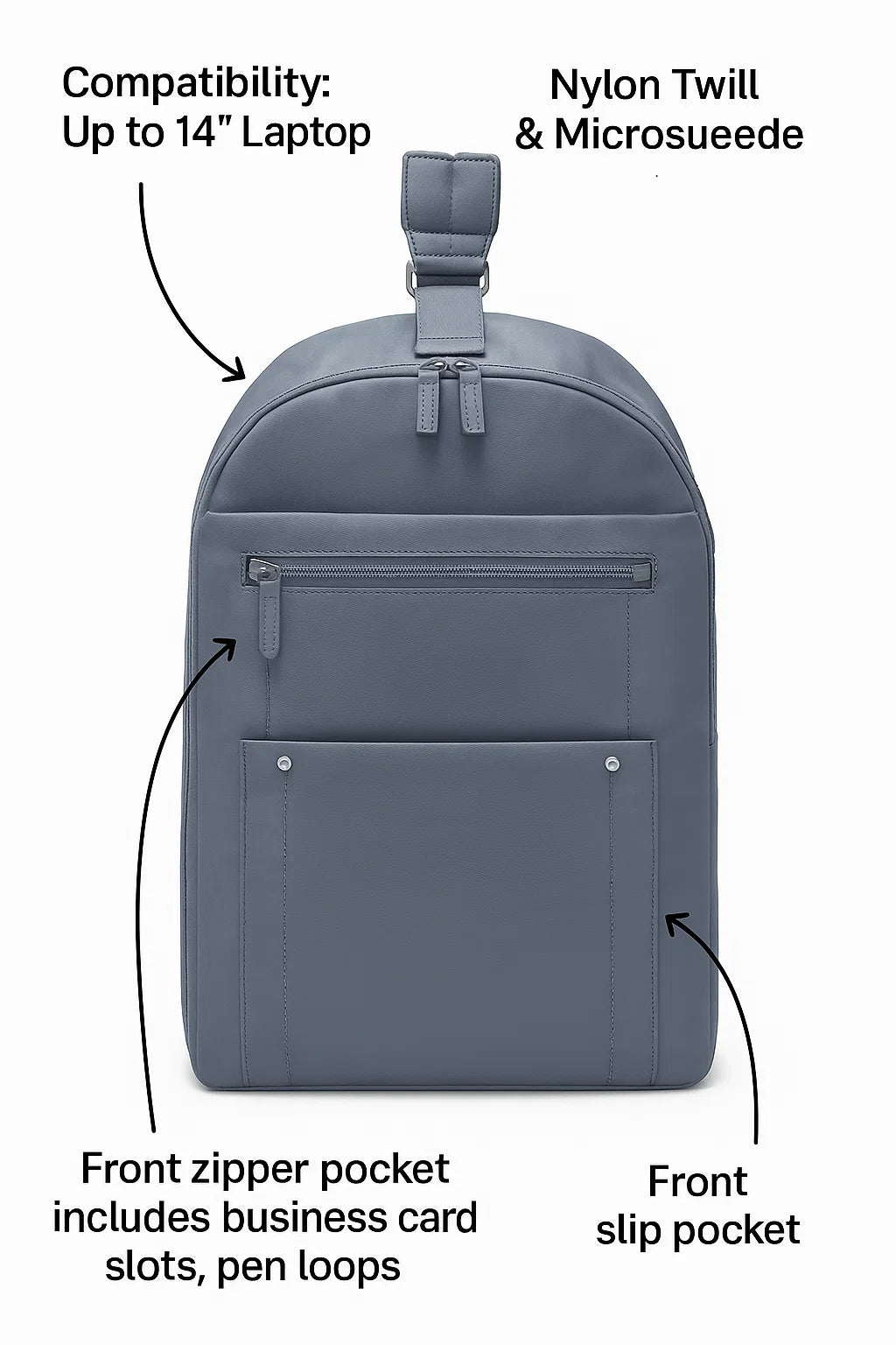 Holds up to 14” laptop