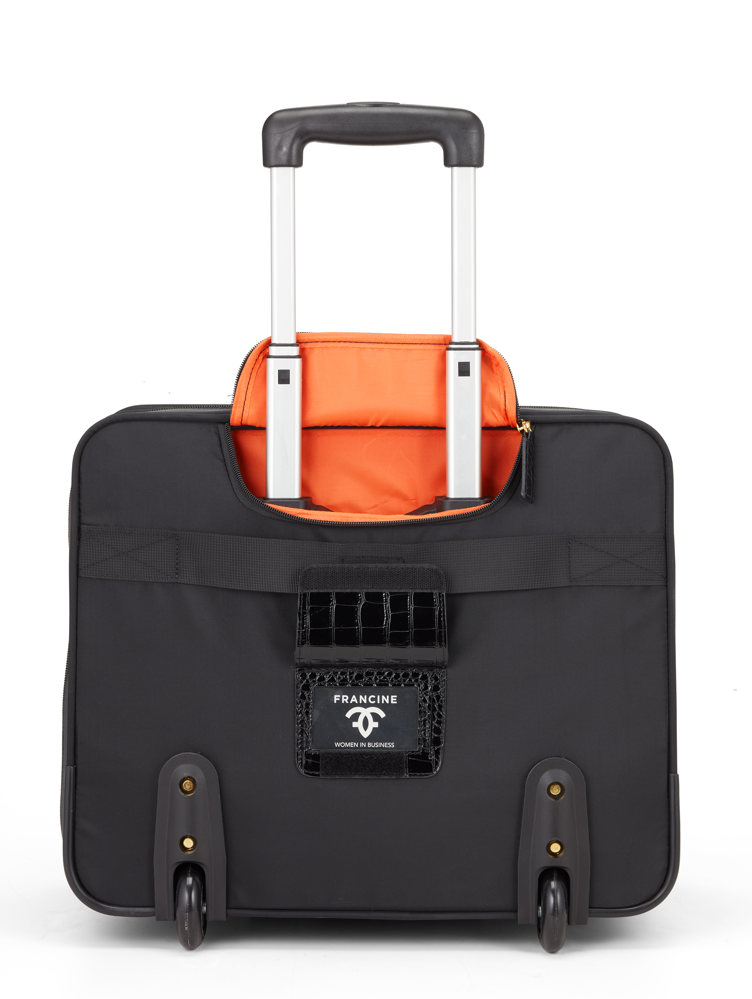 Meet the Croco overnight 17” laptop roller, our stylish office-on-wheels for the mobile warrior. Transport your business travel essentials in croco-embossed vegan leather with our high gloss, overnight laptop roller case from Francine Collections.
