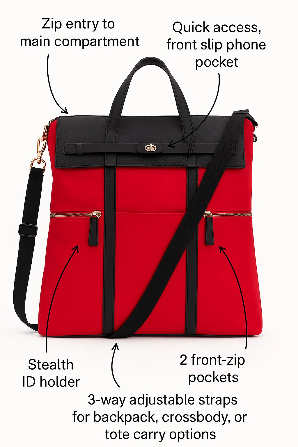 What should you carry with you today? A backpack or a tote? If this is a question on your mind every day, you need our convertible 16” laptop backpack, crossbody, and tote! You don’t need multiple bag options in your closet anymore. You can use this one bag as a backpack, crossbody, or tote, depending on your needs. The Highline convertible backpack and totetransforms from one form to another; all you have to do is adjust the straps.