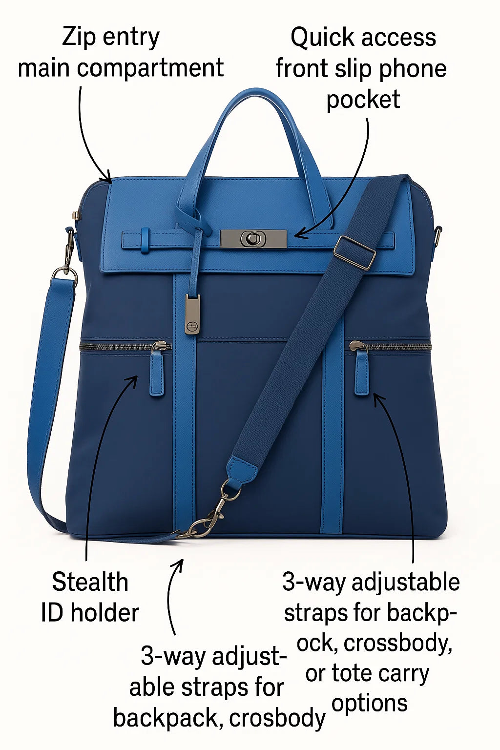 What should you carry with you today? A backpack or a tote? If this is a question on your mind every day, you need our convertible 16” laptop backpack, crossbody, and tote! You don’t need multiple bag options in your closet anymore. You can use this one bag as a backpack, crossbody, or tote, depending on your needs. The Highline convertible backpack and totetransforms from one form to another; all you have to do is adjust the straps.