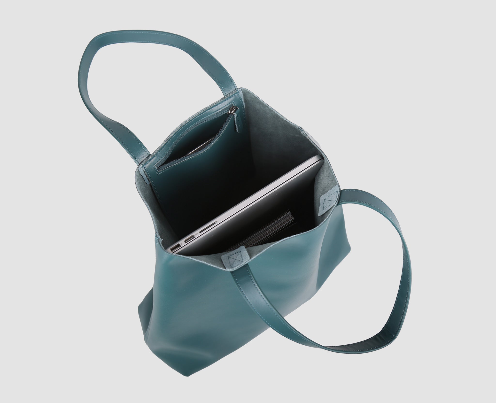 The Made Easy Leather tote is a wide open space w a zippered personal top inside pocket.