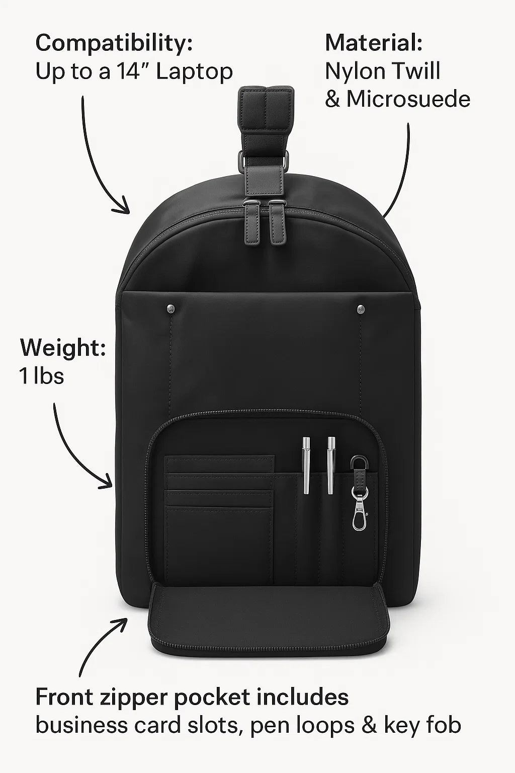 Holds up to 14” laptop