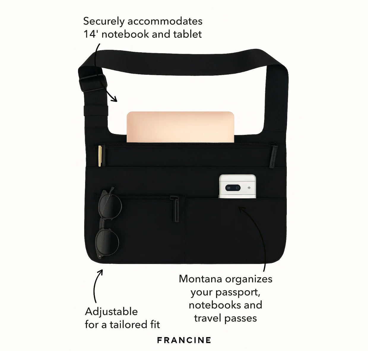 - Bounty of 5 Pockets: Montana organizes everything from your passport, notebook to your subway pass.