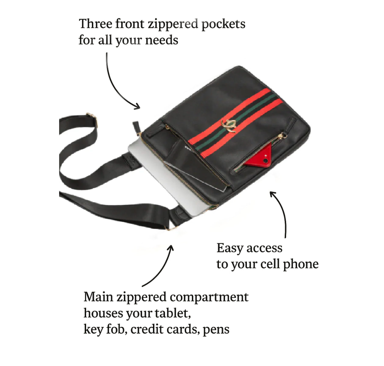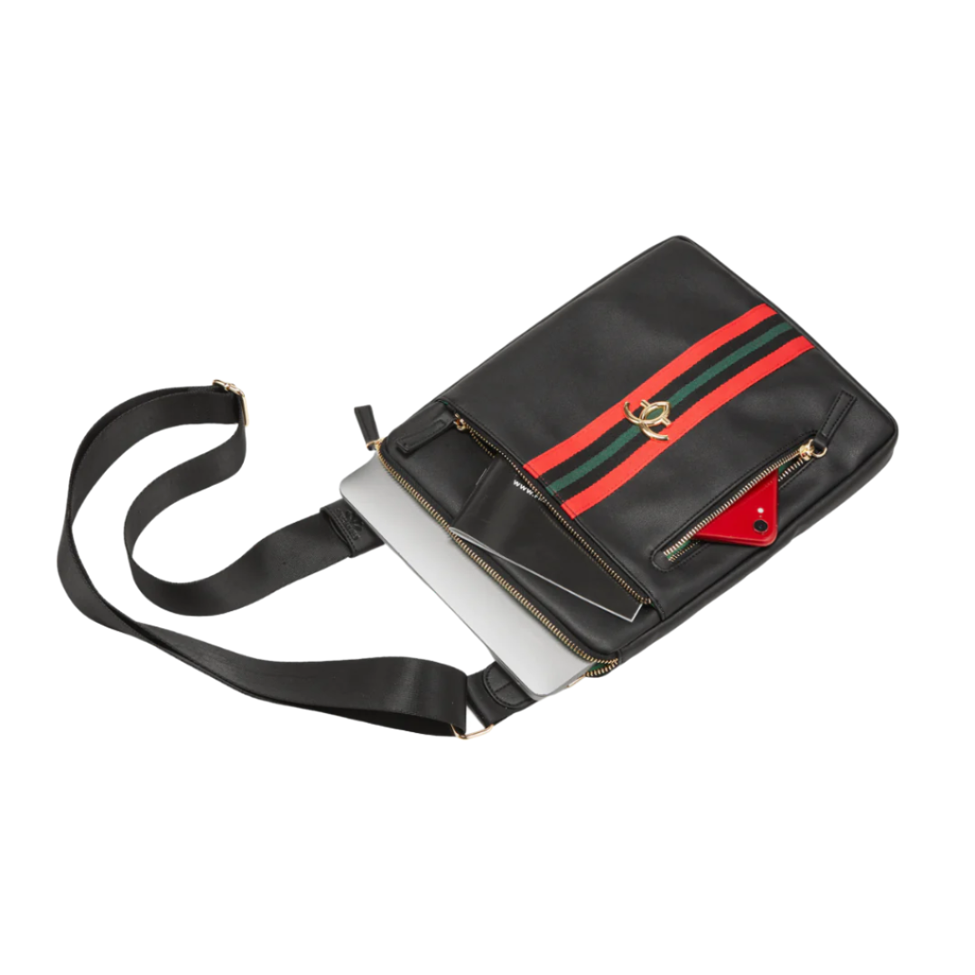 Francine’s Stryker Crossbody is the ultimate bag for city-bound days, international travel, and shopping. No matter the adventure awaiting you, this sleek black crossbody purse is your stylish and reliable companion. The luxurious tri-color webbing stripe is synonymous with the Stryker collection’s timeless elegance. It’s a signature look that represents success, sophistication, simplicity, and more.